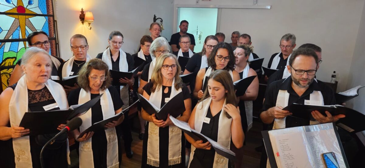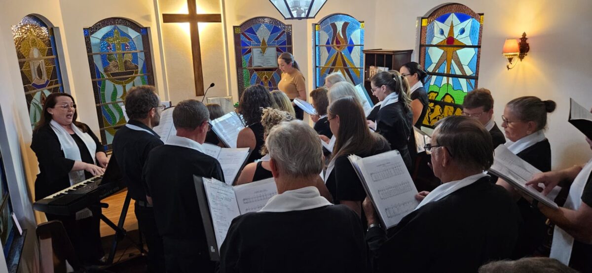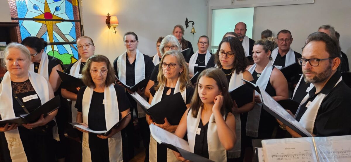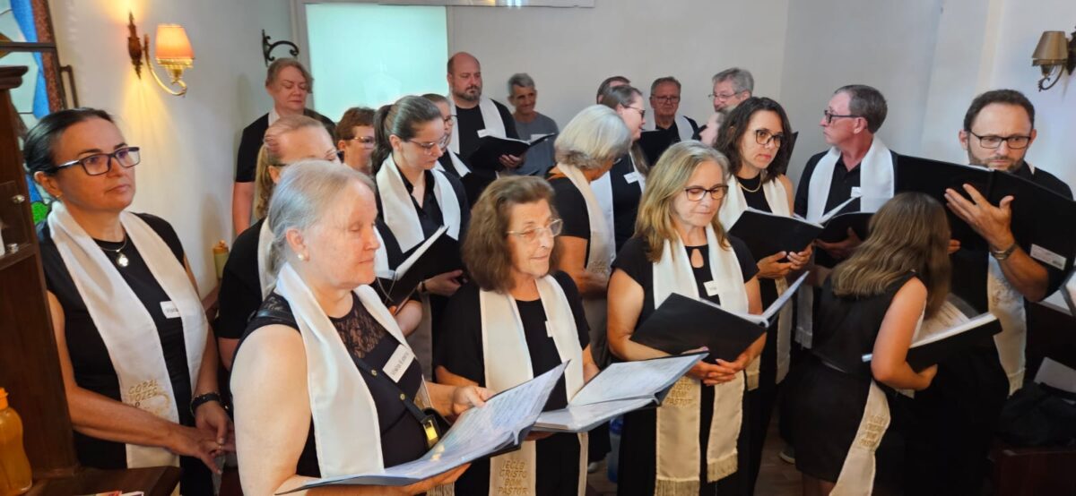 A história do Coral Vozes é feita de passos simples e sonhos grandes. Iniciado de forma informal, sob os cuidados pastorais e o som do violão, o grupo cresceu com o abraço da comunidade e a chegada da regência. Hoje, com 29 integrantes, canta a quatro vozes e prova que dedicação e amor transformam. Em menos de um ano de ensaios quinzenais, um grupo de canto tornou-se coro que anuncia a luz que vence a escuridão.