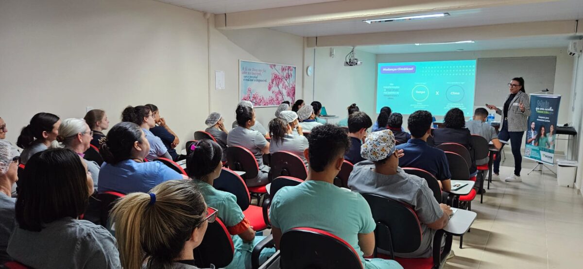 A iniciativa, conduzida pela coordenadora de cidadania e sustentabilidade do Sicoob, Simone Buzzi Karsten, trouxe para dentro do hospital um diálogo acessível sobre temas urgentes, como mudanças climáticas e ESG (Environmental, Social and Governance). Mais do que conceitos, o momento foi de troca, aprendizado e inspiração para atitudes capazes de transformar realidades.