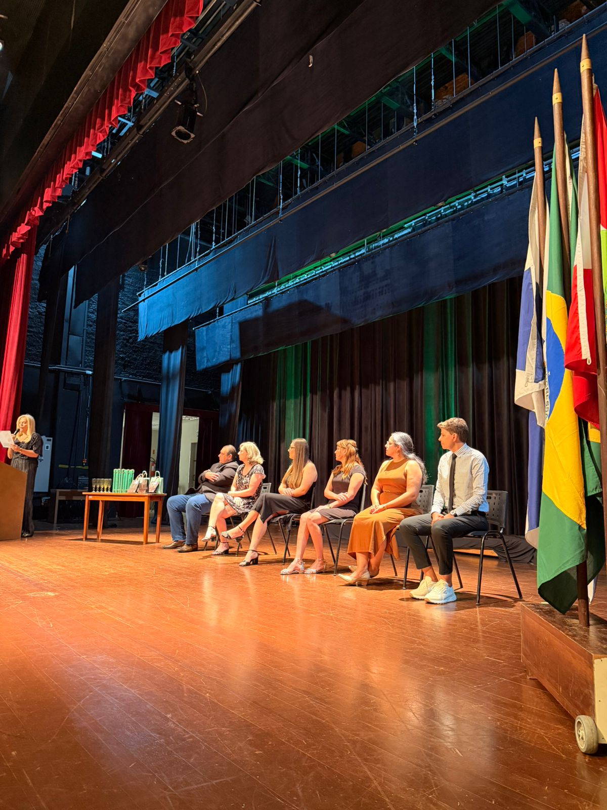 Representando os colegas de turma, a oradora Julia Gabriela Schuster também compartilhou uma mensagem de gratidão e emoção, lembrando os desafios superados ao longo da formação e a alegria de alcançar esse momento tão esperado.