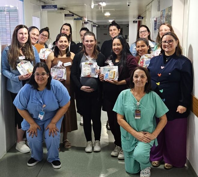 A atividade integra o programa regular da instituição, criado com o propósito de aproximar as famílias da maternidade, desmistificando procedimentos e fortalecendo vínculos com a equipe hospitalar. Conduzida pela enfermeira Taynã Costa e pela técnica de enfermagem Rita Minatti, ambas integrantes da Comissão de Atenção à Maternidade, a edição contou com a participação especial da médica pediatra e neonatologista Dra. Camila Giachim (CRM 25218 / RQE 19519 / RQE NEO 25383), que respondeu às dúvidas sobre os primeiros cuidados com o recém-nascido com sensibilidade e clareza.