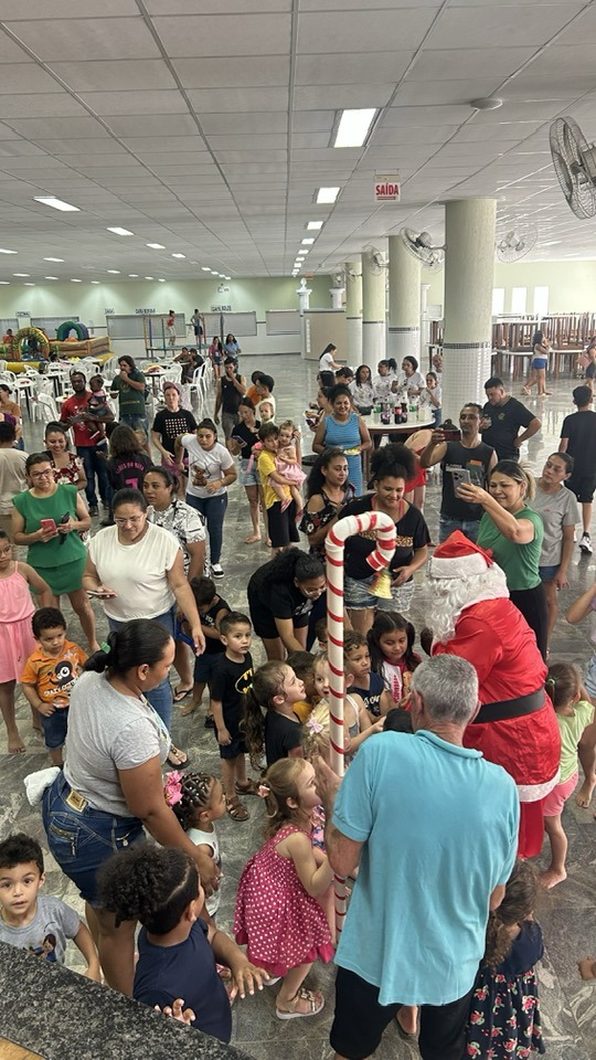 A entrega dos presentes ocorreu de forma organizada e acolhedora, reunindo crianças, familiares e equipe organizadora em momentos de alegria e partilha. Ao final, o registro coletivo simbolizou a união que tornou a ação possível.