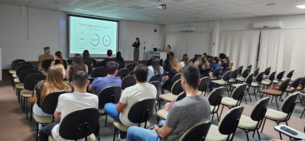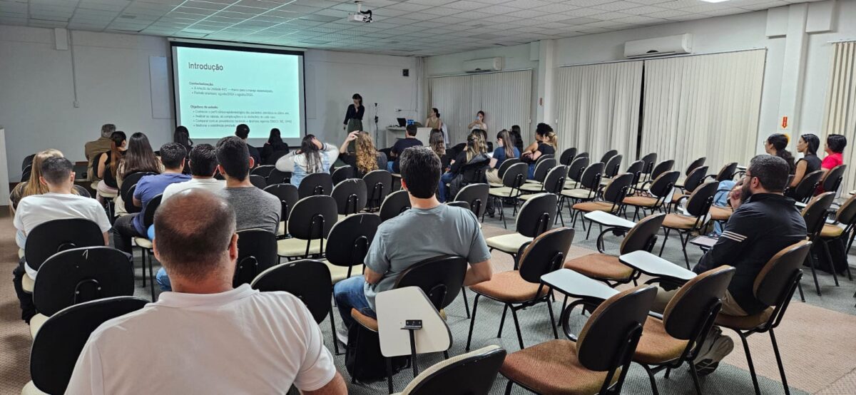 Na sequência, a Dra. Maria Eugênia Rocha, residente de Clínica Médica, apresentou um panorama dos 12 primeiros meses de atuação da Unidade de AVC no hospital, evidenciando avanços no atendimento, no acompanhamento pós-alta e na reabilitação dos pacientes — reforçando a importância do diagnóstico e intervenção precoces.