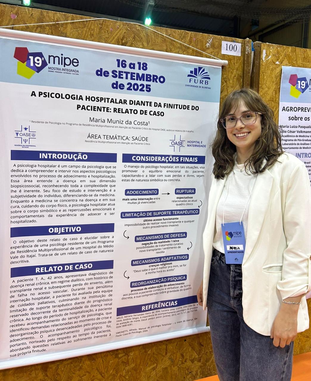 Quando estudar, pesquisar e cuidar se encontram no mesmo gesto. Os residentes do Programa de Residência Multiprofissional em Atenção ao Paciente Crítico do Hospital e Maternidade Oase participaram da 19ª Mostra Integrada de Ensino, Pesquisa, Extensão e Cultura da FURB. Cada trabalho apresentou experiências vividas no cuidado a pacientes críticos, unindo conhecimento técnico e sensibilidade.