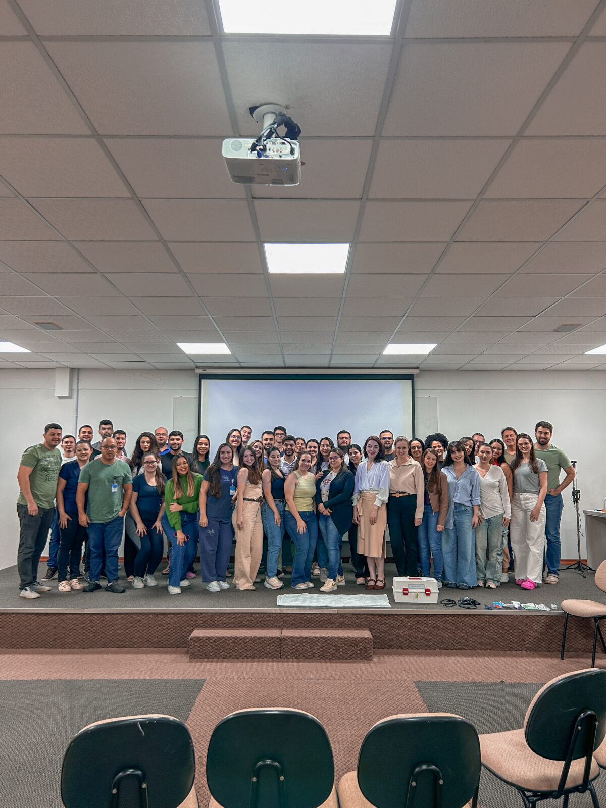 No encerramento, a dra. Taimara conduziu uma explicação clara sobre protocolos de identificação e manejo do AVC — reforçando que cada minuto conta. Em seguida, a equipe participou da Prática do Protocolo AVC, integrando teoria e atuação segura.