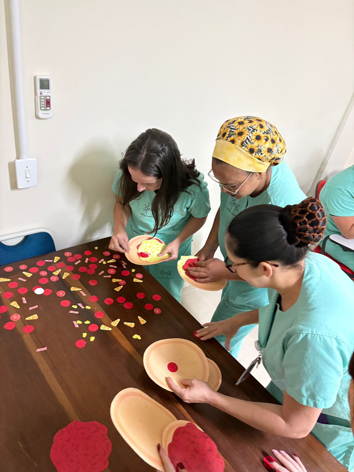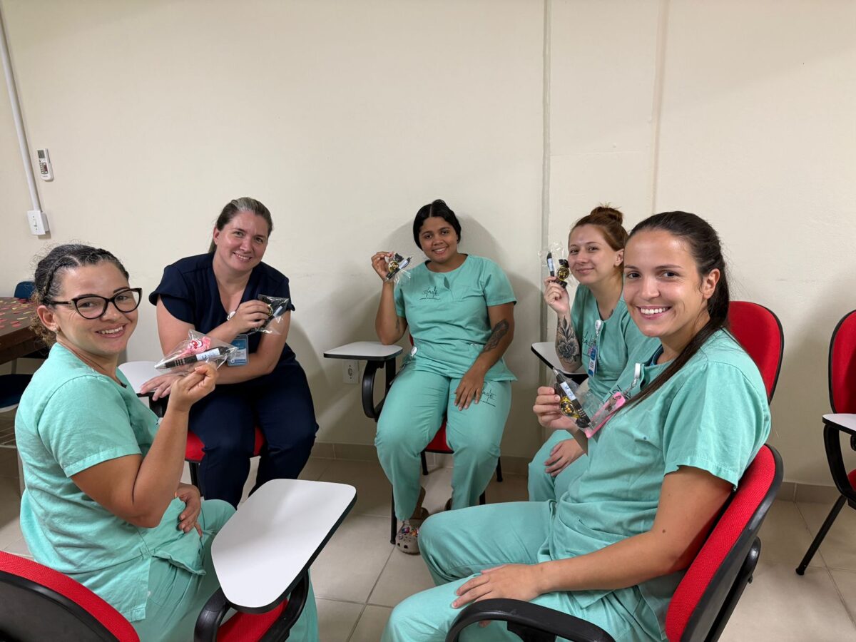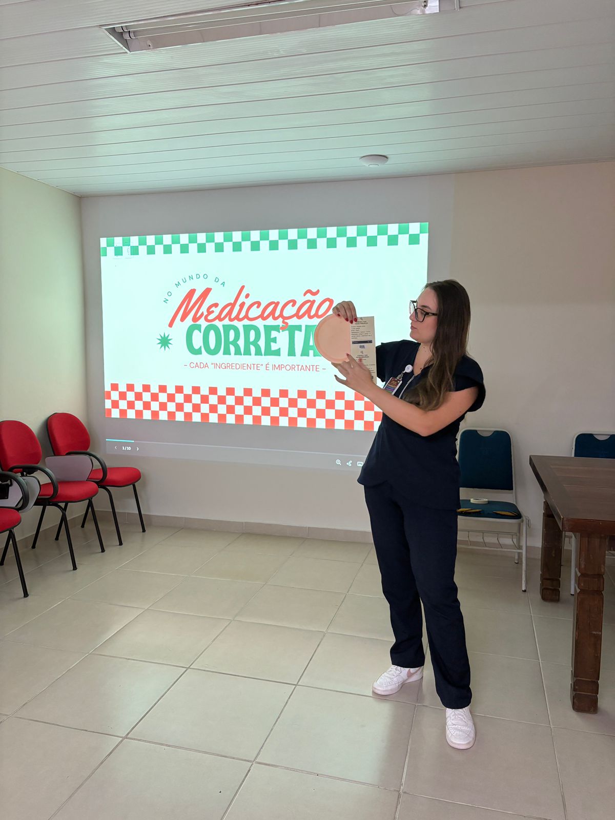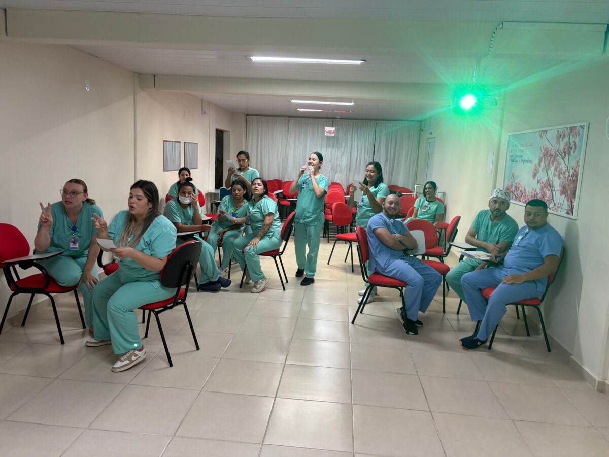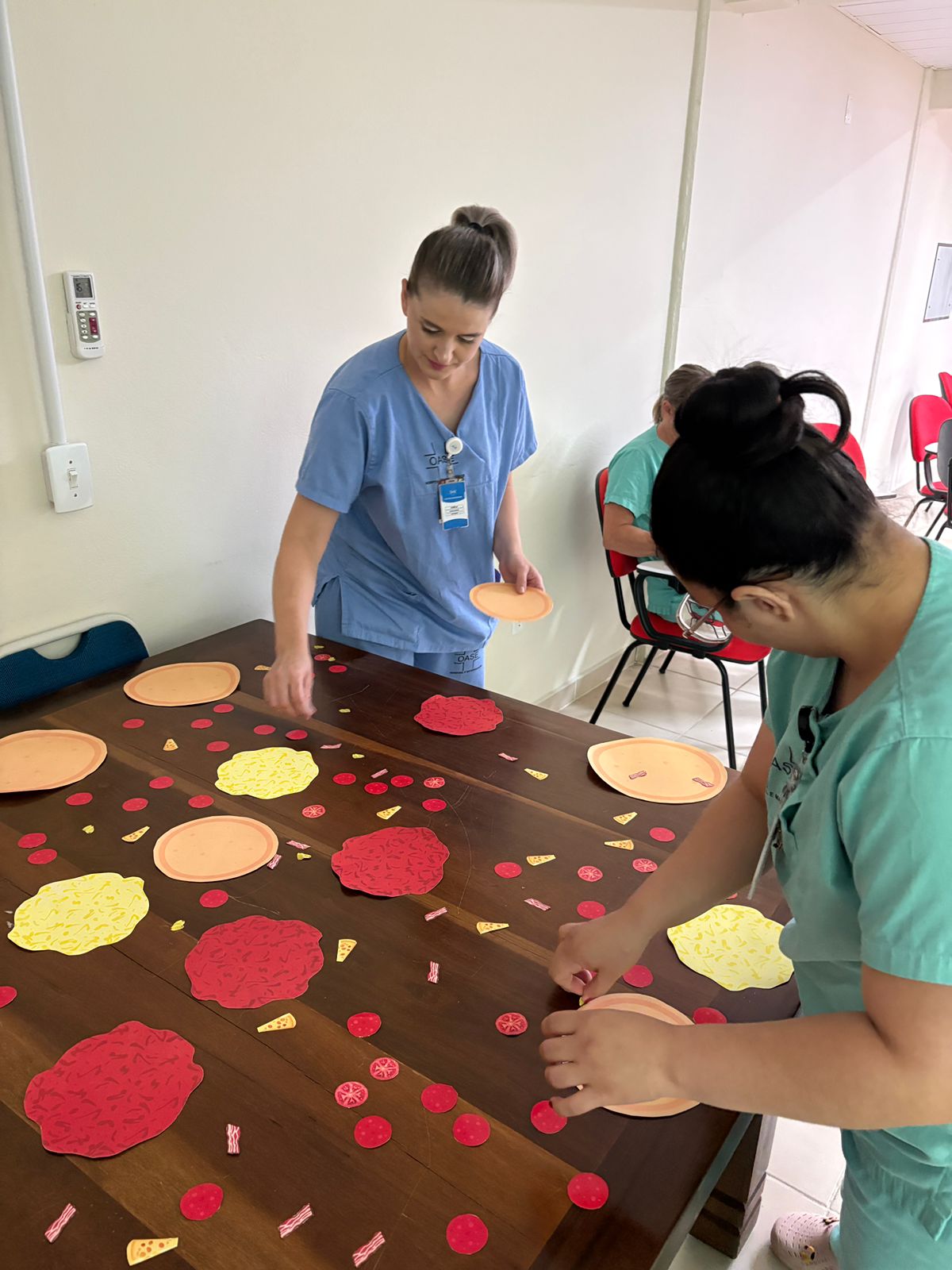 A capacitação foi conduzida de forma leve, prática e reflexiva, utilizando uma abordagem criativa que correlacionou o cuidado com o paciente ao processo de montar uma pizza. A proposta permitiu que os participantes compreendessem, de maneira didática, a importância de cada etapa do processo assistencial, desde a organização dos materiais e a higiene das mãos até o preparo correto da medicação, a atenção aos detalhes e o cumprimento rigoroso dos protocolos, sempre com calma, foco e responsabilidade.