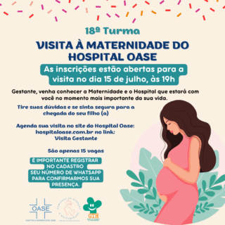 O momento do nascimento merece cuidado, carinho e tranquilidade. Pensando nisso, o Hospital e Maternidade Oase, por meio da Comissão de Atenção à Maternidade, convida gestantes e seus acompanhantes para uma experiência especial e acolhedora: a Visita à Maternidade! 💕